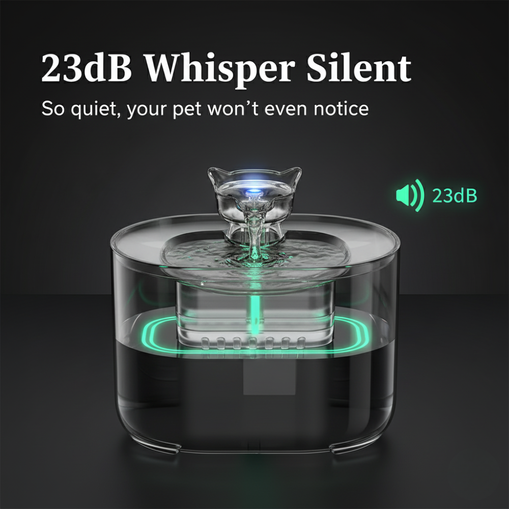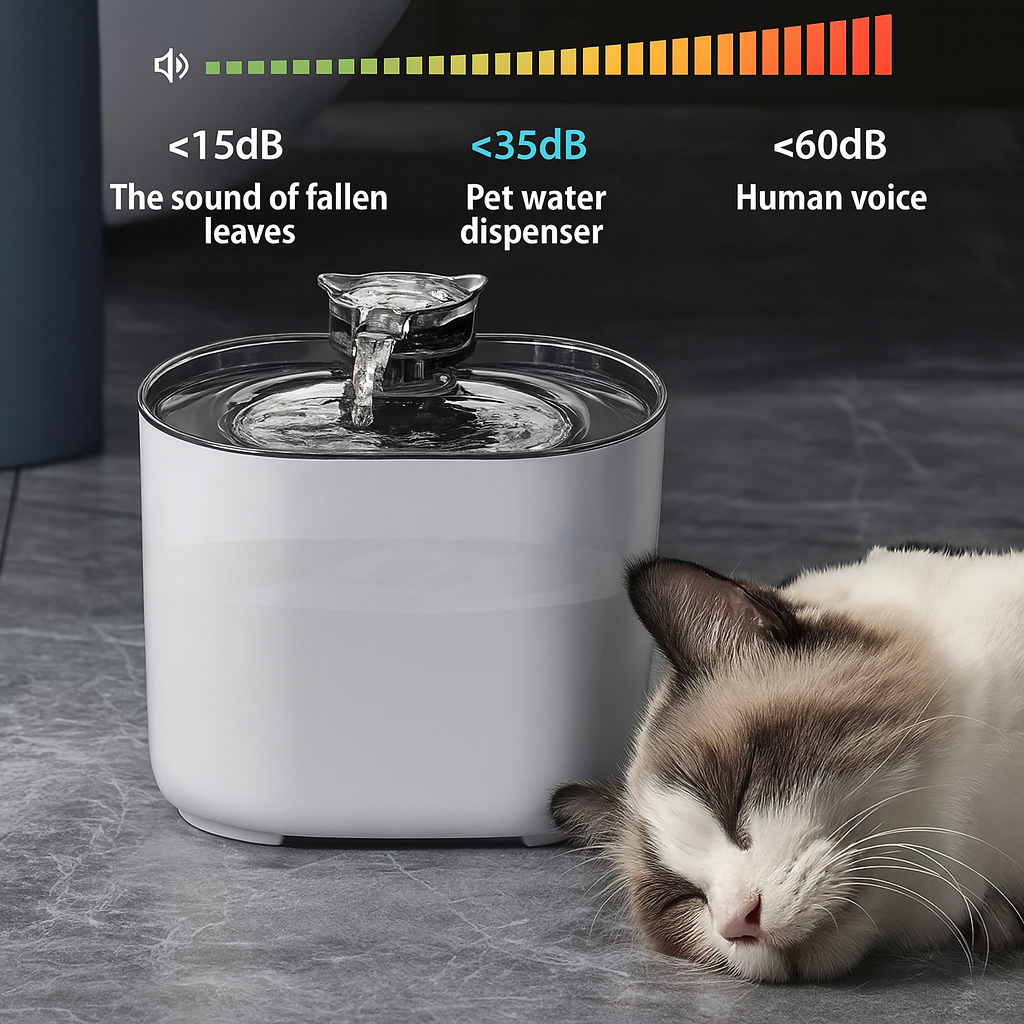 Answer 2: No, the fountain features a gentle and quiet pump that operates silently, ensuring your living space remains peaceful without disturbing your pets or household.