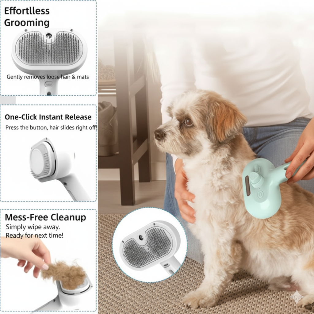 Designed with soft rounded bristles and a one-click hair release system, it makes grooming effortless and enjoyable for both of you.